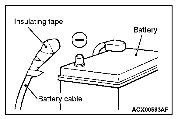 Disconnect the negative (-) battery cable from the battery and tape the terminal to prevent accidental connection and deployment.