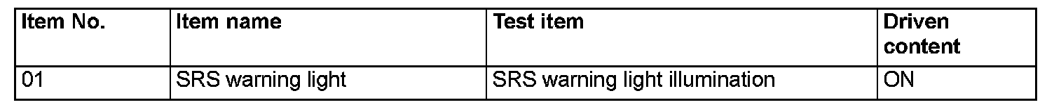 Actuator Test Reference Table: