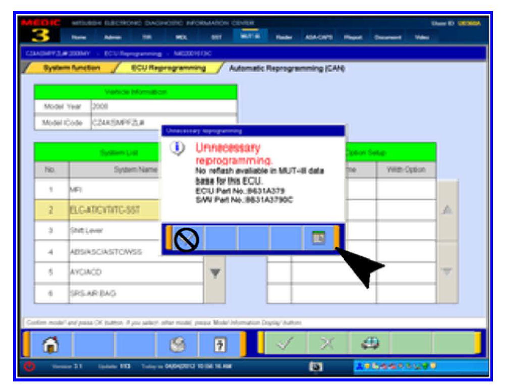 6. Click the Data Screen icon (not the check mark) on the the "Unnecessary Reprogramming" dialog box.
