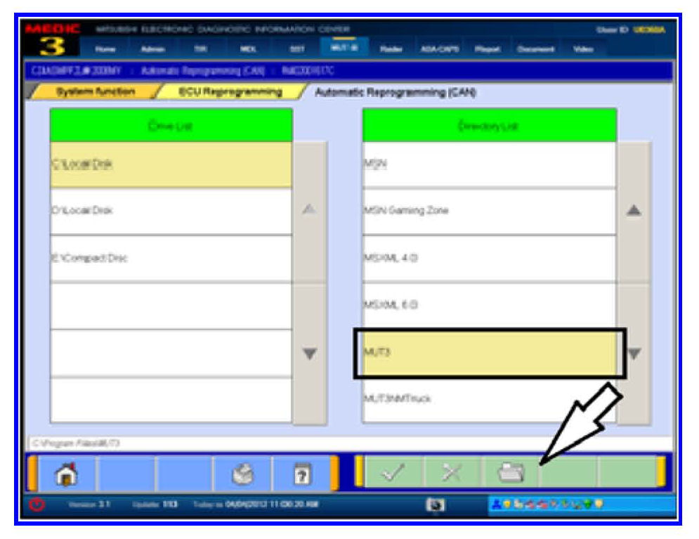 11. Select MUT3 and click the file Folder icon at the bottom of the screen.