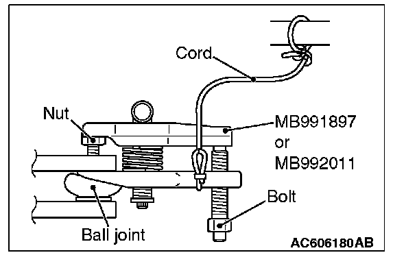 1. Install special tool MB991897or MB992011 as shown in the figure.