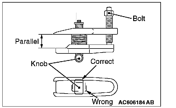 NOTE: To adjust the special tool jaws to be parallel, set the knob as shown in the figure so that it functions as a fulcrum of the jaws.