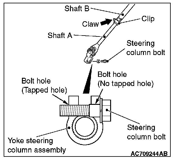 1. Pinch the claw of the clip shown in the figure. While sliding shaft A from shaft B, connect the steering column shaft assembly with the steering gear and linkage assembly.
