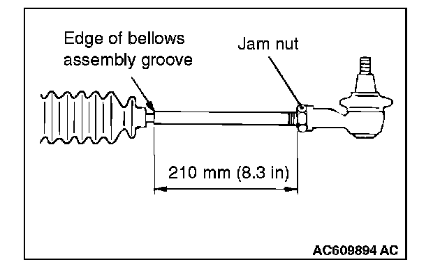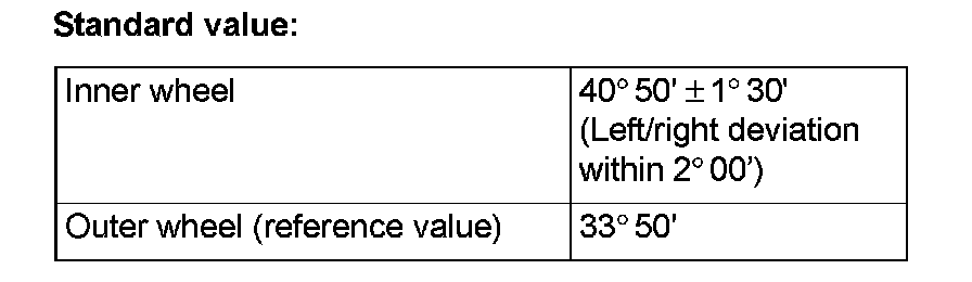 3. If not within the standard value, adjust the tie-rods (right and left), and repeat Steps 1 and 2.