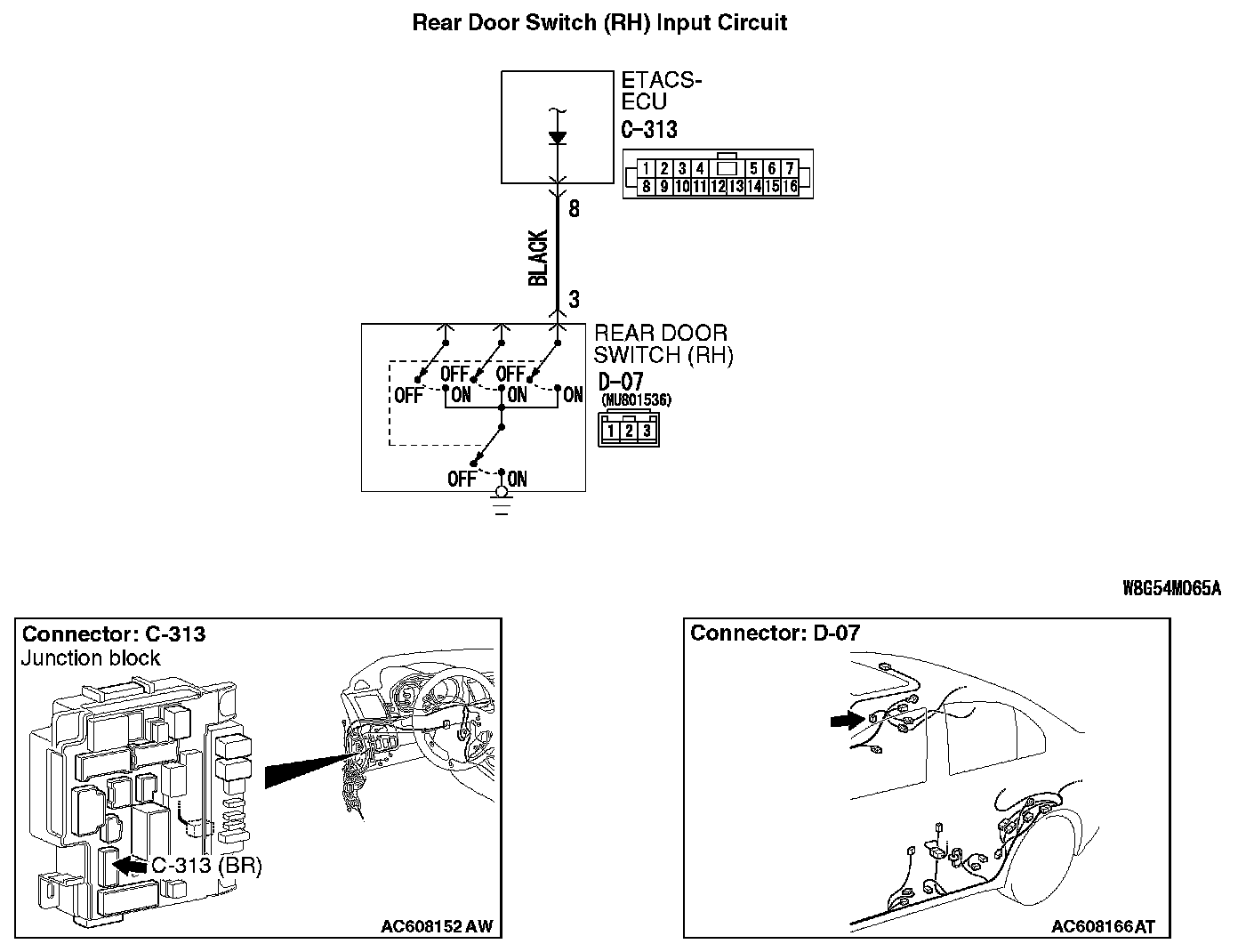 Inspection Procedure 8: ETACS-ECU does not receive any signal from the rear door switch (RH).