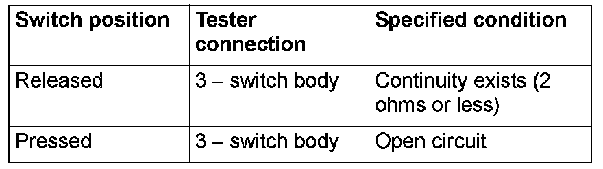 Remove the rear door switch (RH). Then check the continuity between the switch terminals and the switch body.