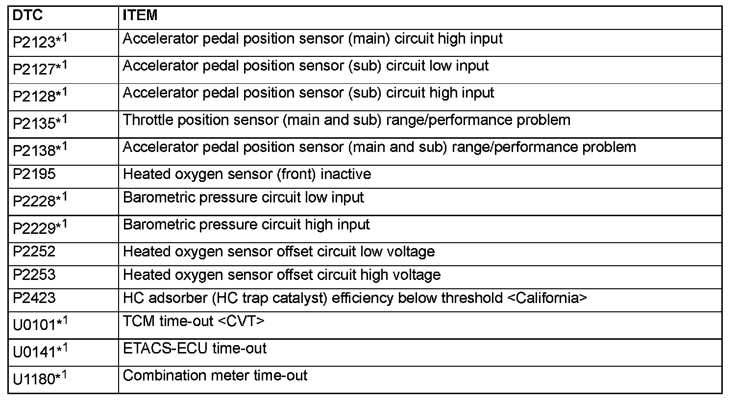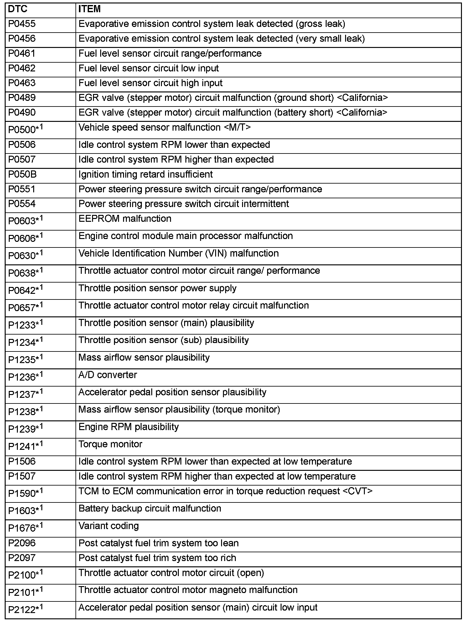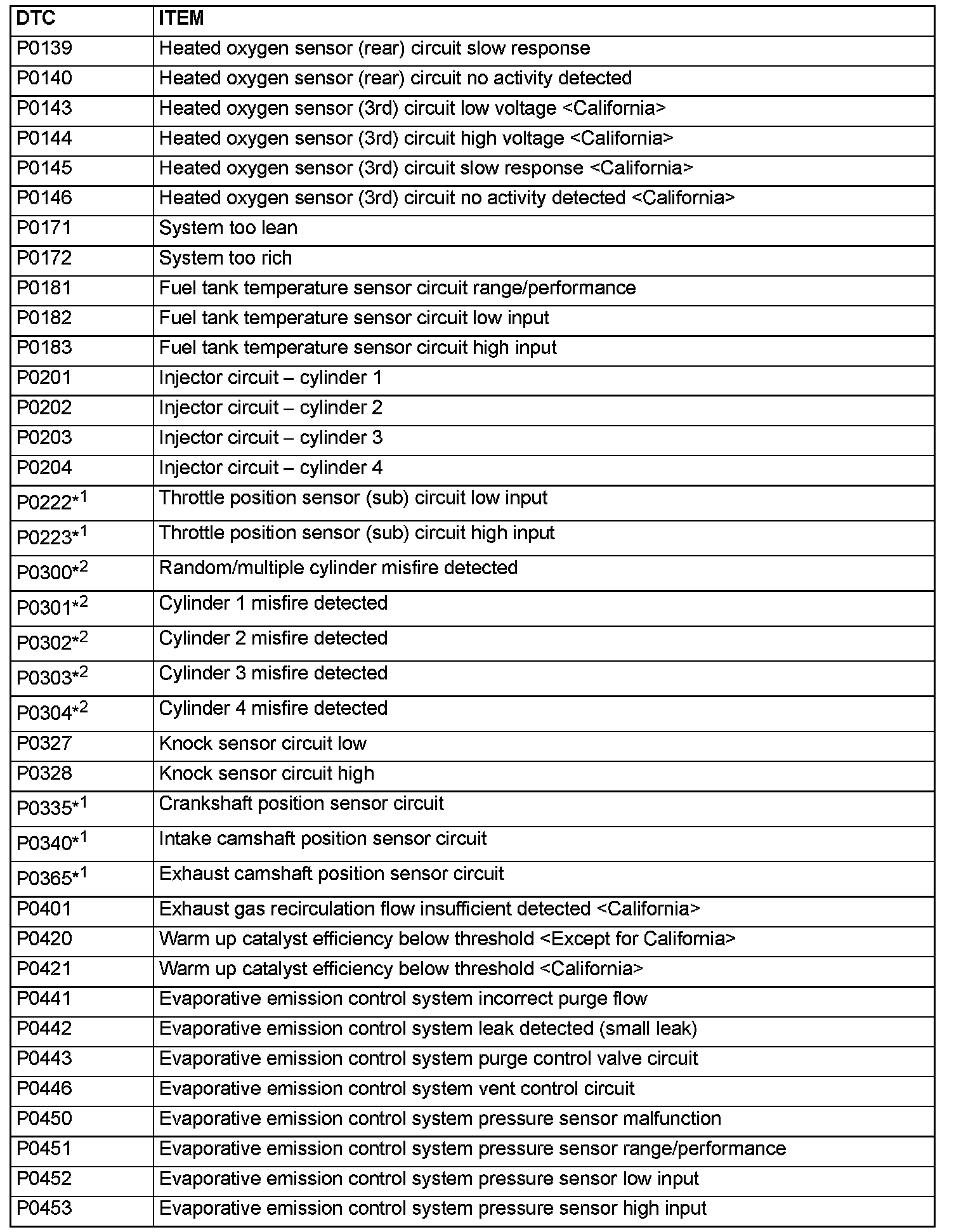 - The codes marked with a "*2" in the diagnosis code number column have the following two conditions for illuminating the Malfunction Indicator Lamp (SERVICE ENGINE SOON or Check Engine Lamp).