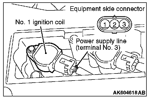 3. Set the timing light to the power supply line (terminal No. 3) of the ignition coil No. 1.