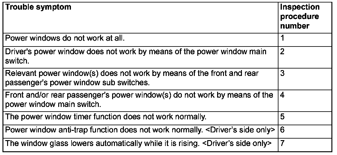 POWER WINDOWTROUBLE SYMPTOM CHART