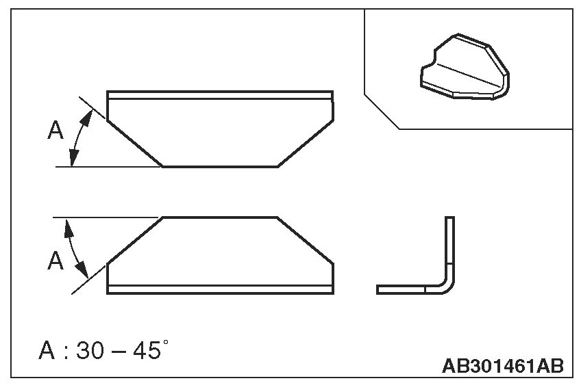 6. To avoid a concentration of stress prepare a reinforcement plate that has been cut to 30 - 45 degree angle at both ends.
