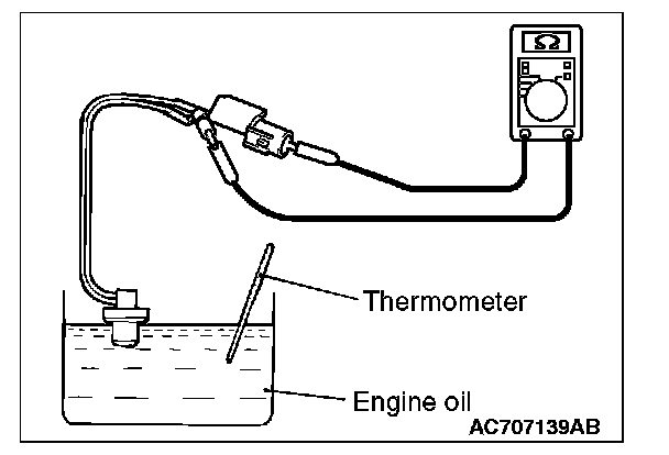 2. When the oil temperature reaches the standard value, check that voltage is supplied between the terminals.