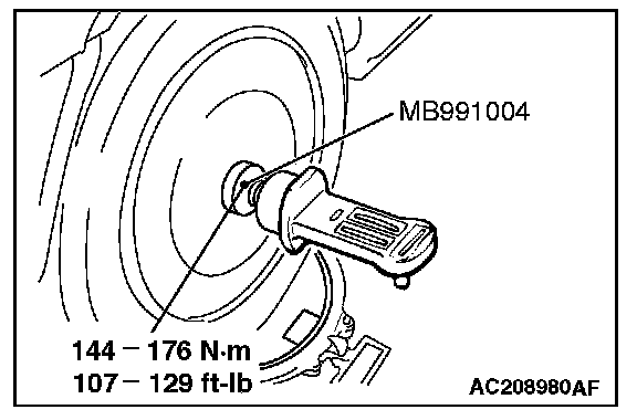 ^ For AWD vehicles with aluminum wheels, tighten the wheel alignment gauge attachment (Special tool: MB991004) to the specified torque, then measure the camber