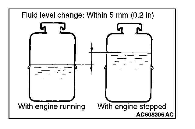 4. Check the fluid in the oil reservoir for foaming or milkiness. Check the difference of the fluid level when the engine is stopped, and while it is running. If the change of the fluid level is 5 mm (0.2 inch) or more, air bleeding should be done.