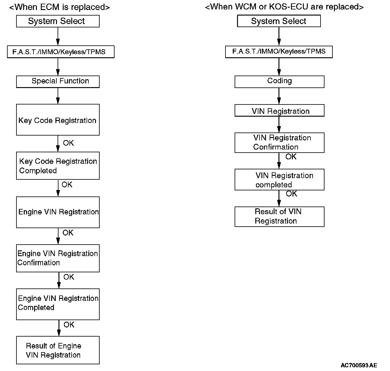 Follow the procedure below to register the VIN of the Wireless Control Module (WCM) and the Keyless Operation System (KOS).