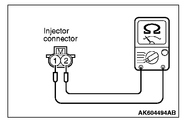2. Measure the resistance between injector side connector terminals 1 and 2.