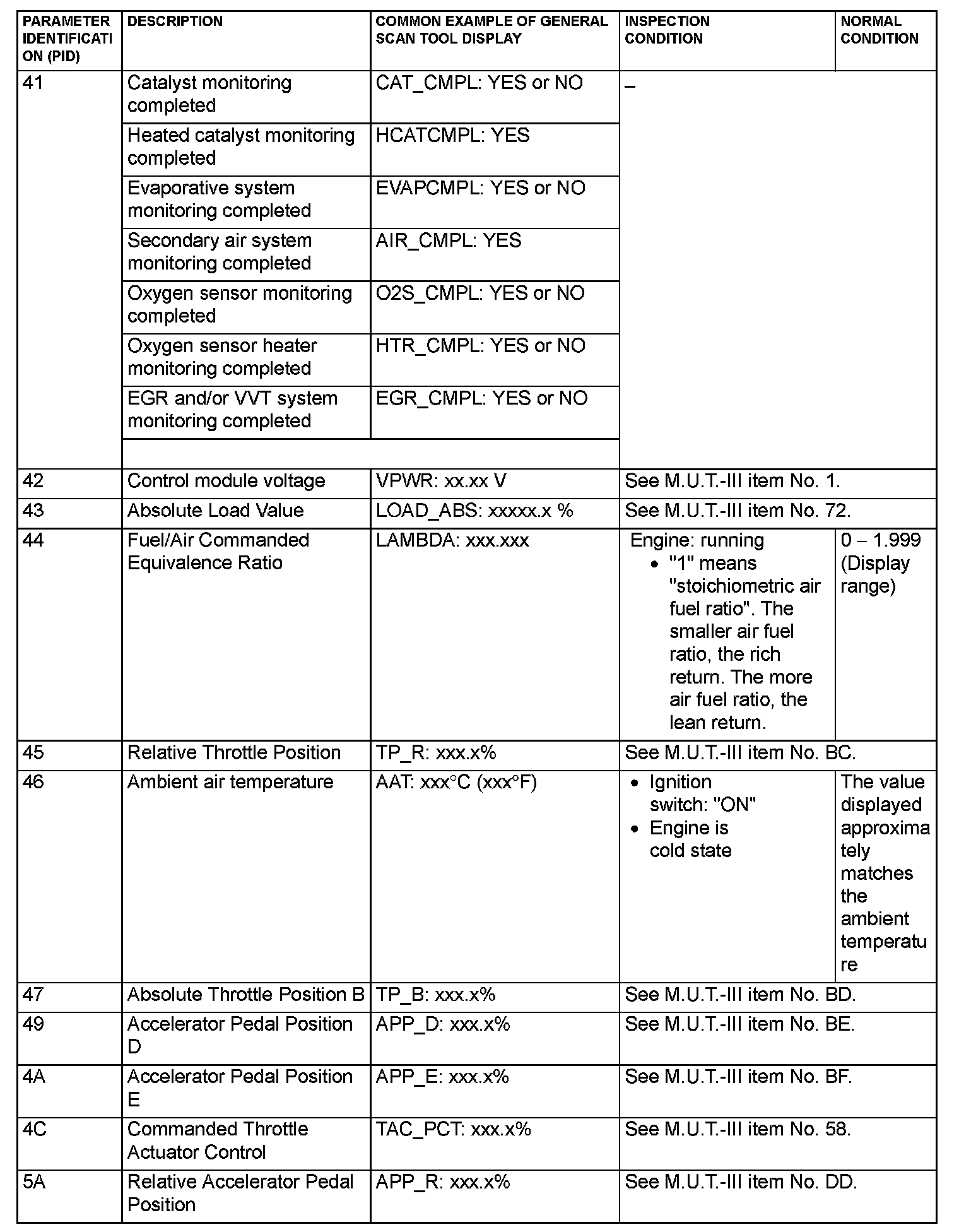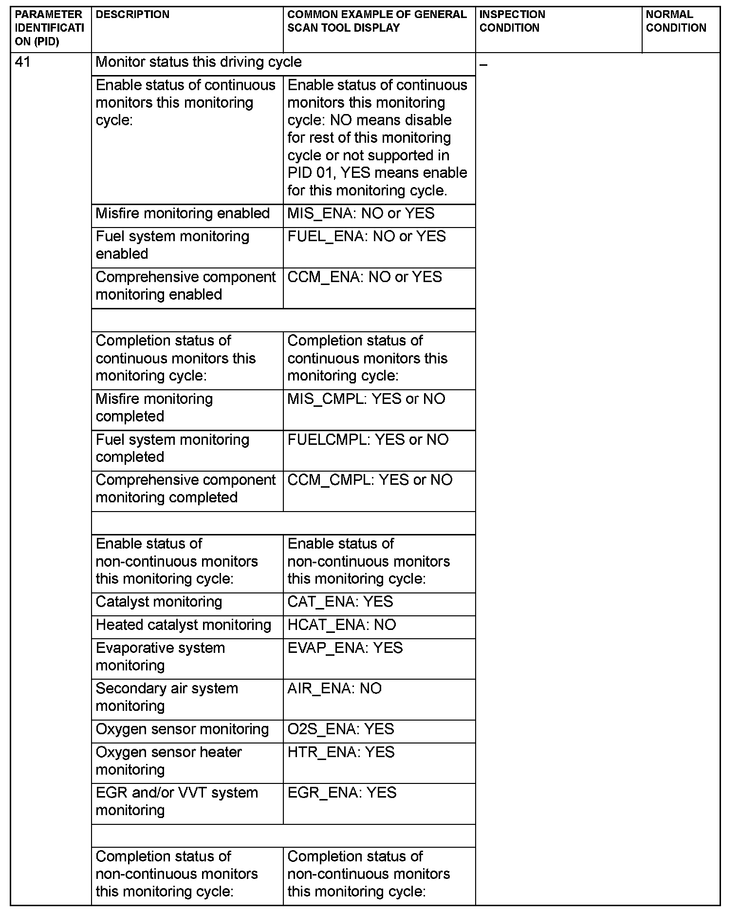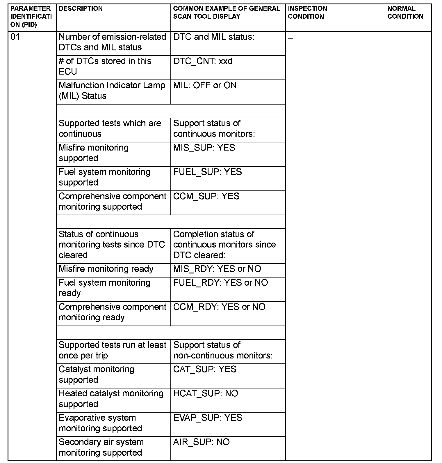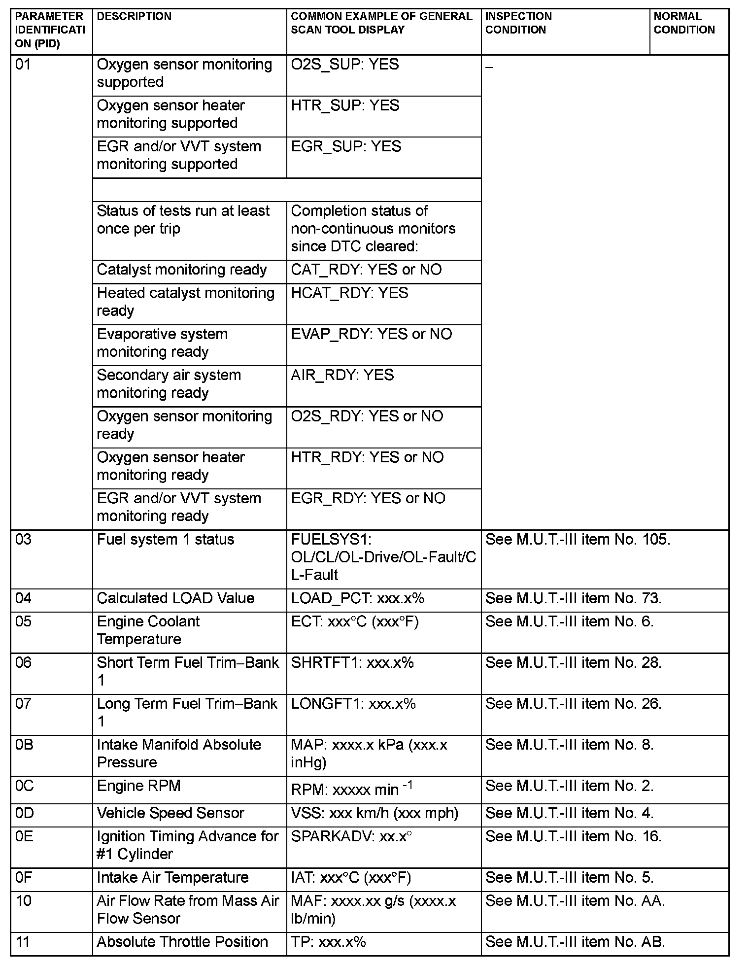 GENERAL SCAN TOOL (GST) MODE 01 REFERENCE TABLE
