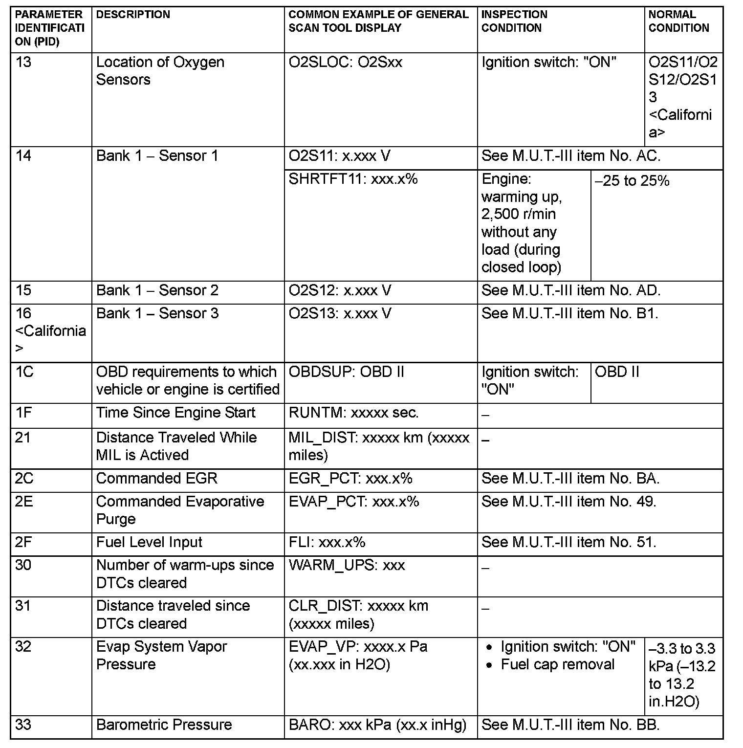 NOTE: GST MODE 01 can be accessed through the use of a general scan tool.
