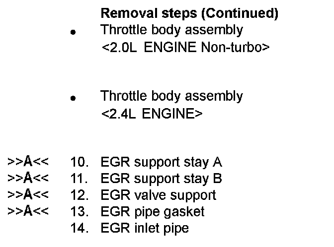 REMOVAL AND INSTALLATION [2.0L ENGINE NON-TURBO (VEHICLES FOR CALIFORNIA), 2.4L ENGINE]Pre-removal & Post-installation Operation: