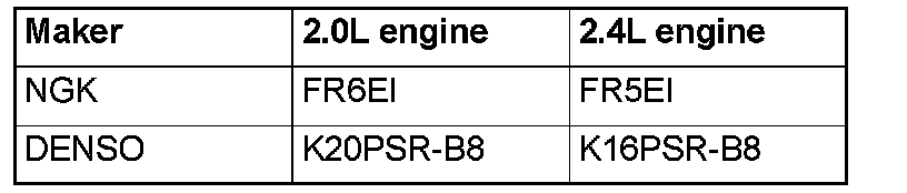 Iridium plugs are used. Use care not to damage the iridium tips of the plugs. Do not adjust the spark plug gap.