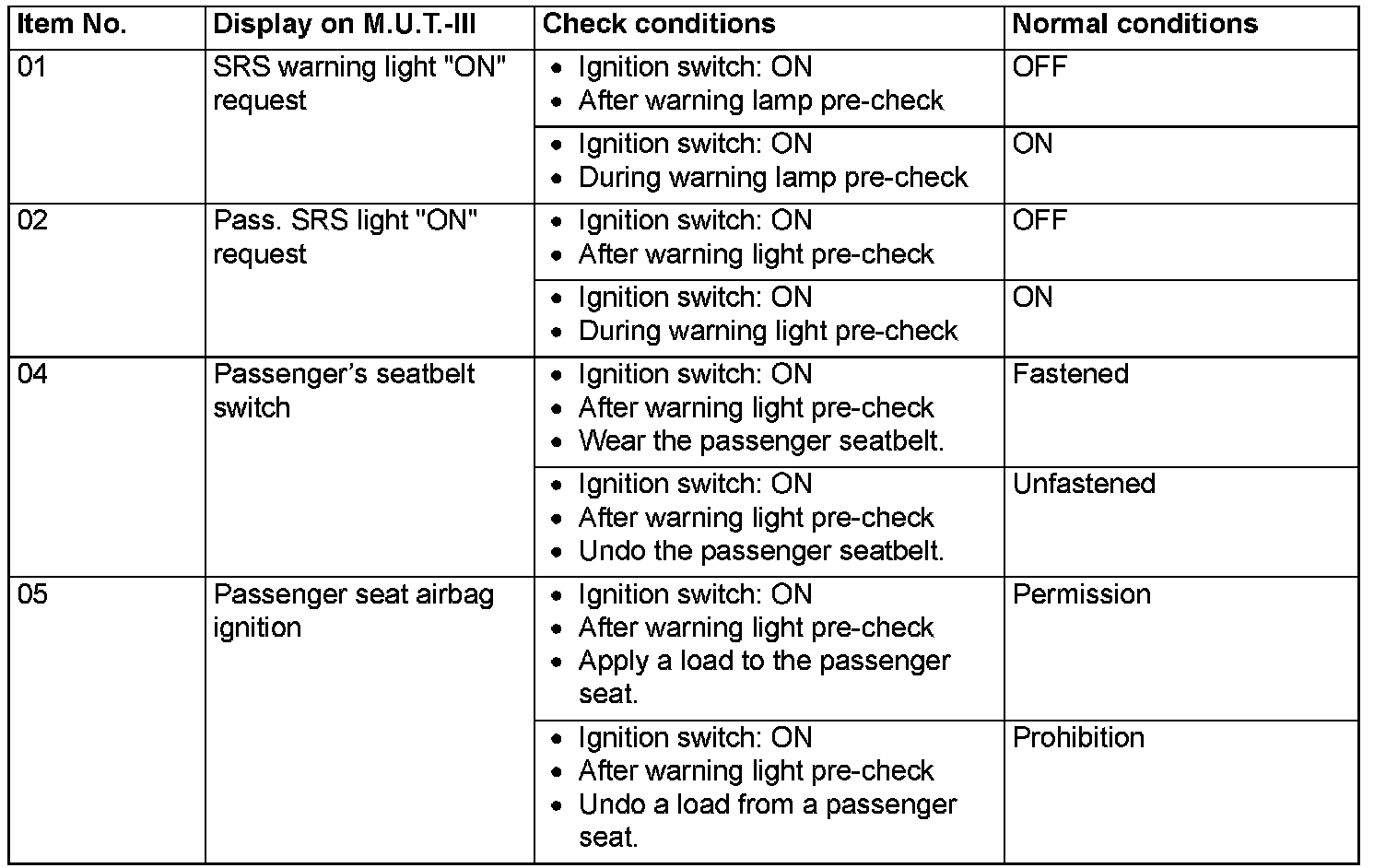 The following items can be read by the scan tool from the SRS-ECU input data.