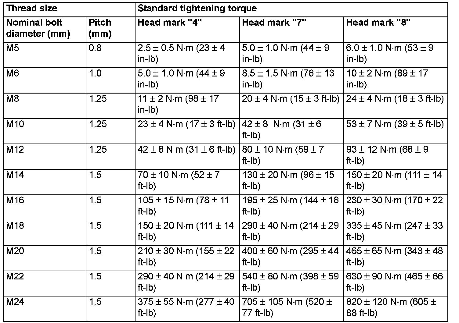 TIGHTENING TORQUEEach torque value in the table is a standard value for tightening under the following conditions.