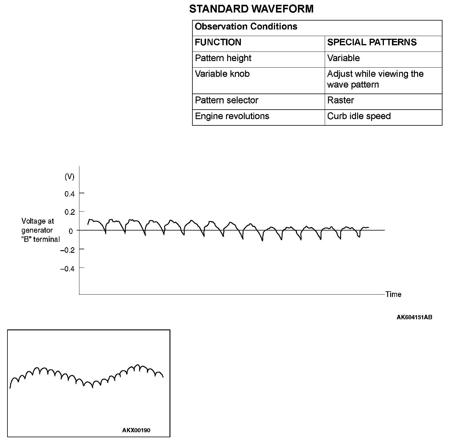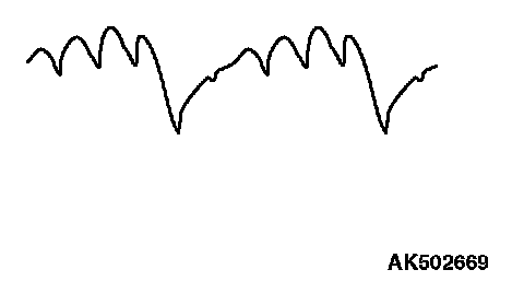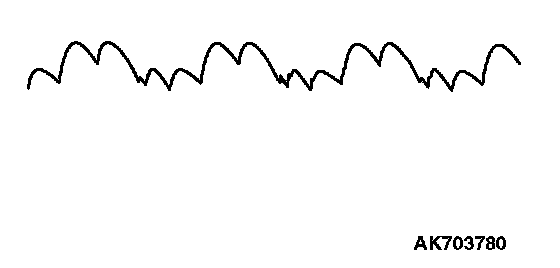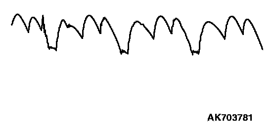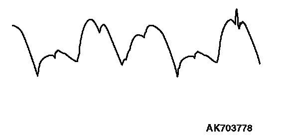 - Identification of abnormal waveforms is easier when there is a large output current (regulator is not operating). (Waveforms can be observed when the headlights are illuminated.)