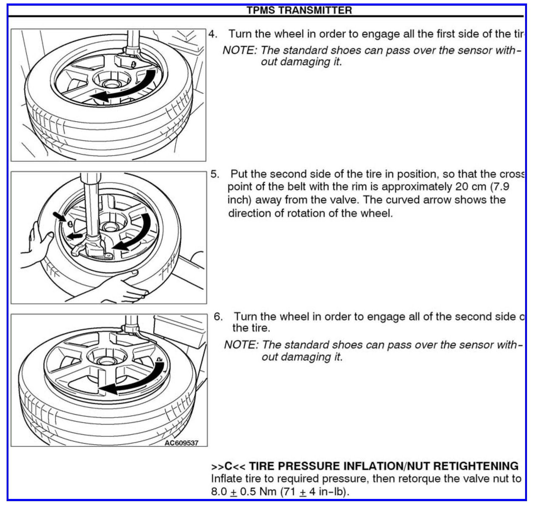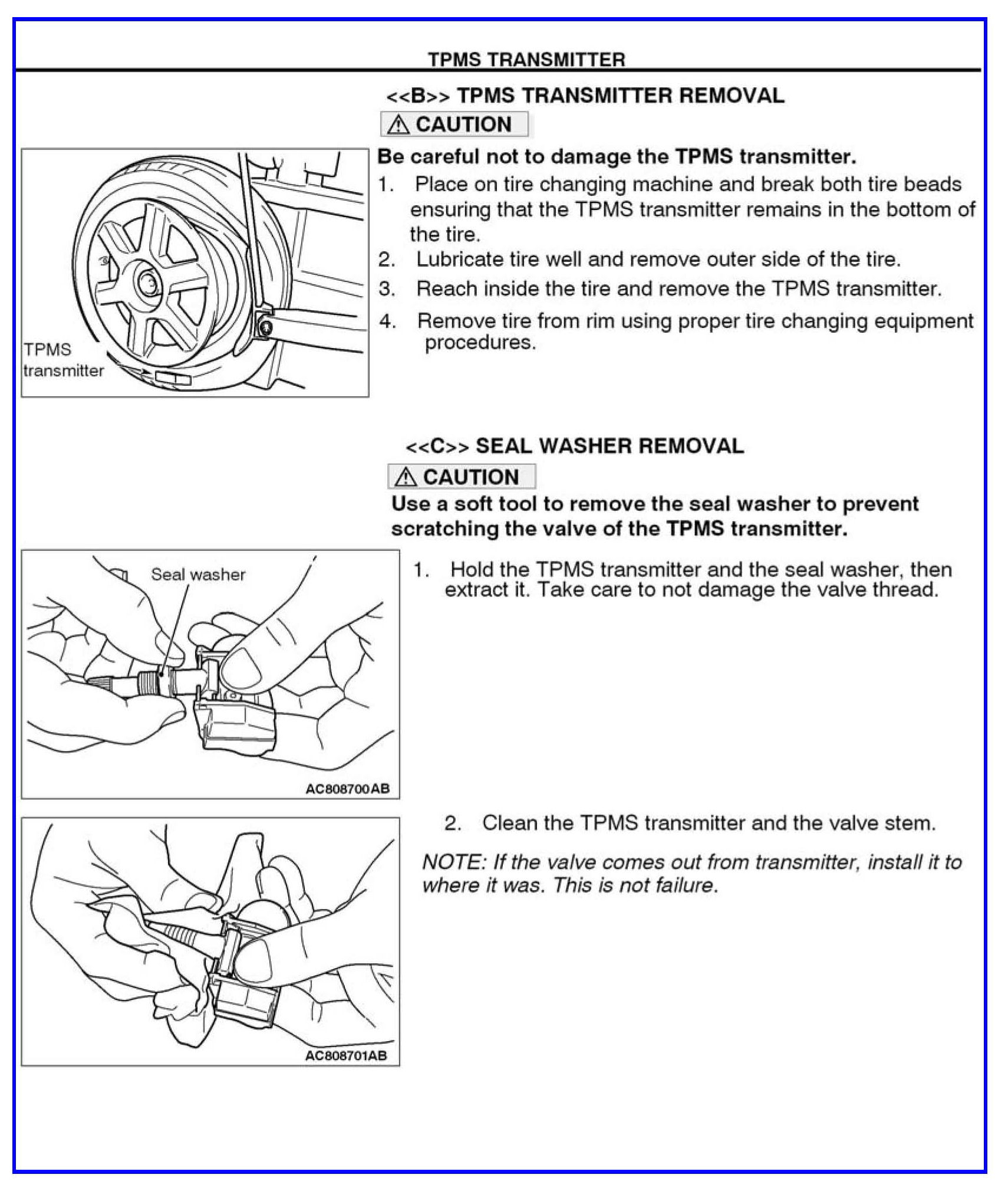 TPMS TRANSMITTER REMOVAL AND INSTALLATION - SERVICE MANUAL REVISION