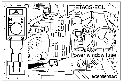 POWER WINDOW OPERATING CURRENT CHECK1. Remove the power window fuse, and connect a multimeter as shown in the illustration.