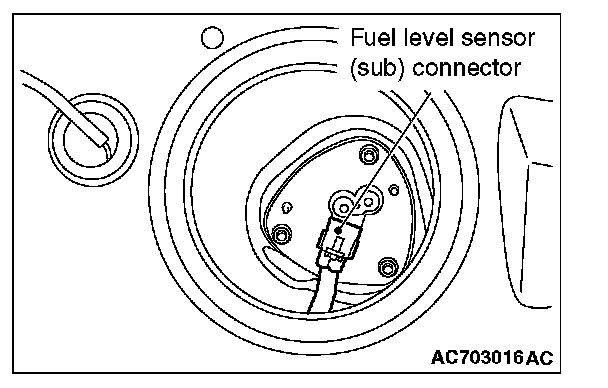 CAUTION: Pay attention not to damage the fuel level sensor (sub) and the float of the fuel level sensor (sub) when removing it from the fuel tank through the service hole.