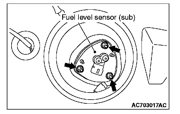 4. Remove the fuel level sensor (sub) mounting nuts, and remove the fuel level sensor (sub) from the service hole.