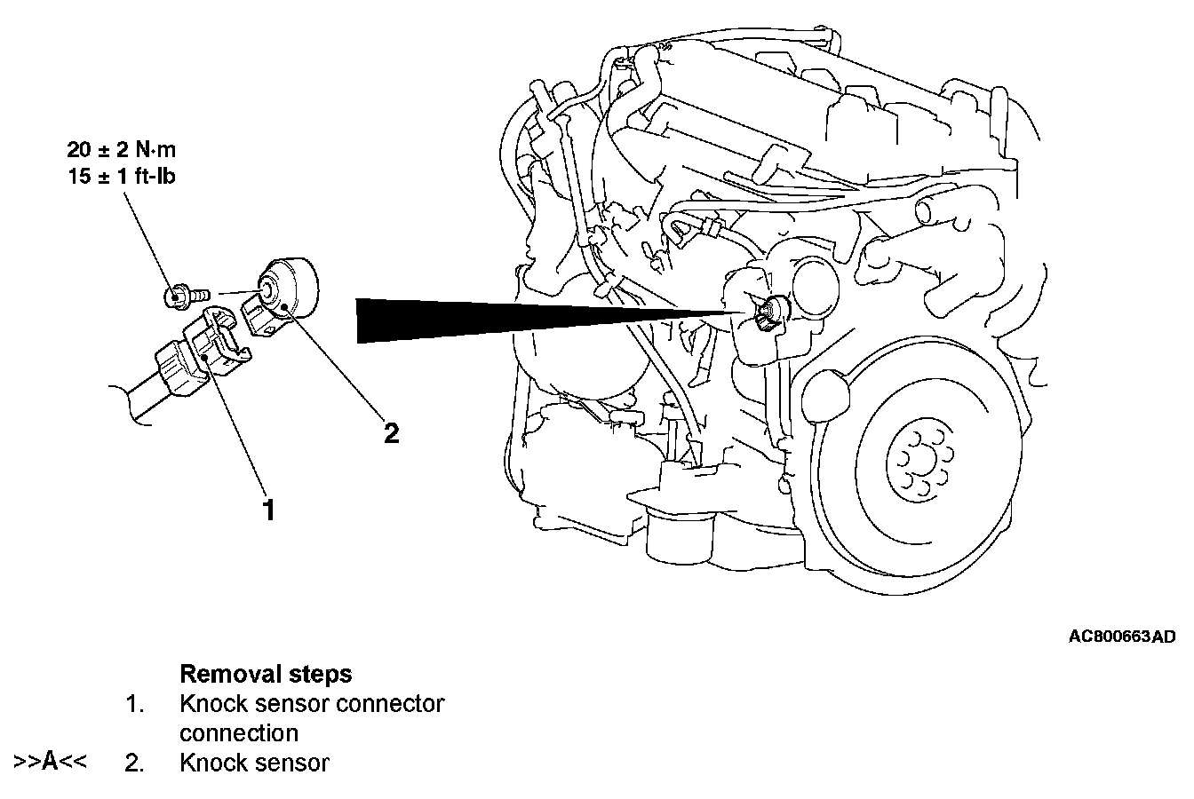 - When the knock sensor replacement is performed, use scan tool MB991958 to initialize the learning value (Refer to Precautions Before Service - Initialization Procedure for Learning Value in MFI Engine)