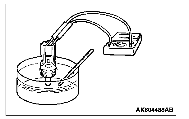 2. With the temperature sensing portion of engine coolant temperature sensor immersed in hot water, check the resistance.