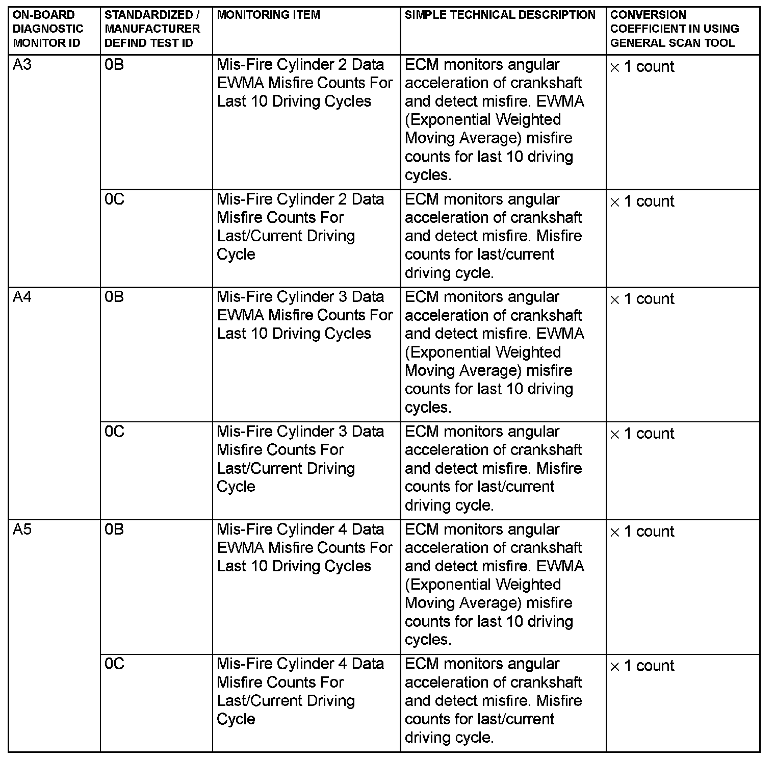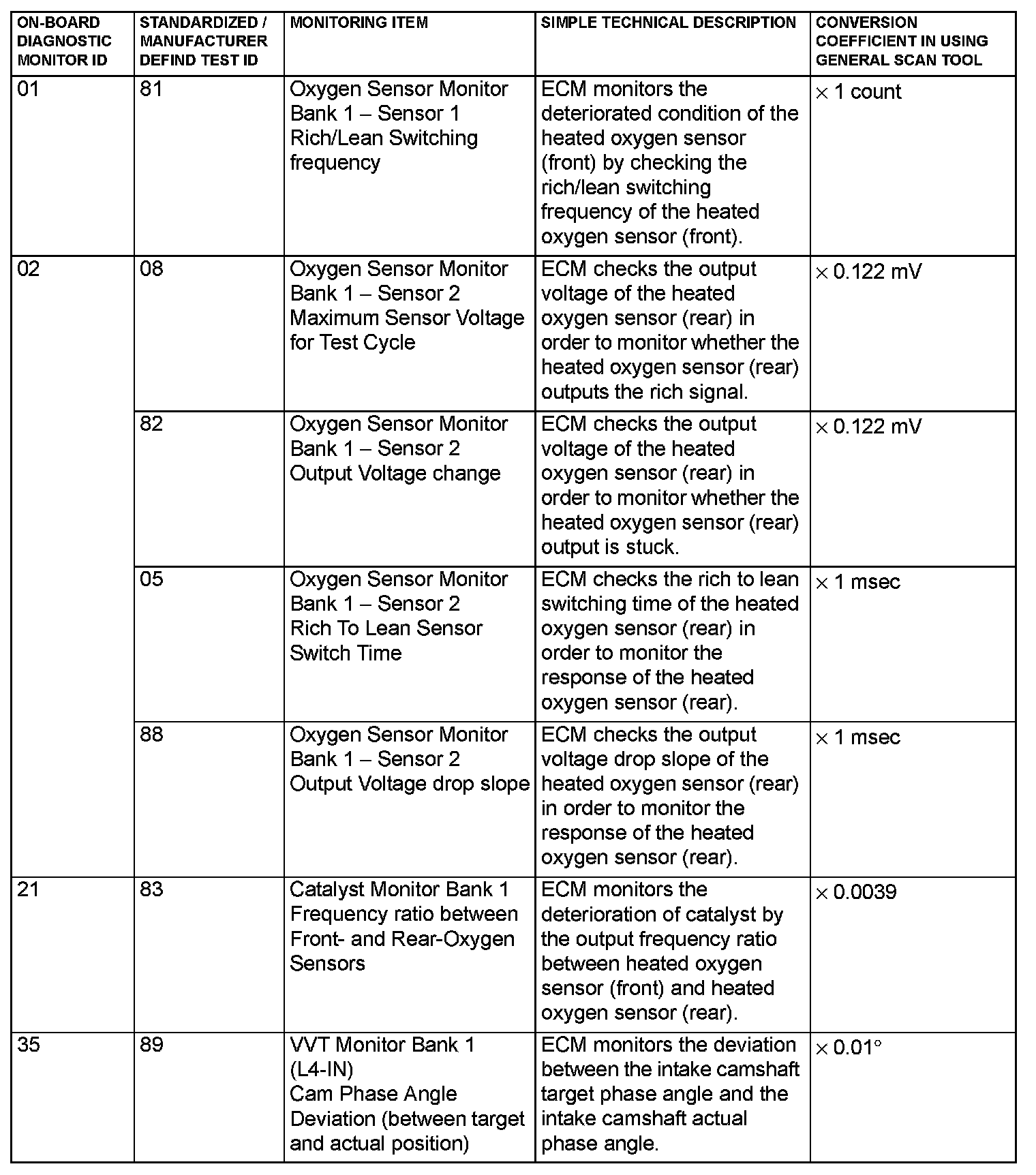 MODE 6 REFERENCE TABLEThe engine control module (ECM) monitors the condition of emission control system.