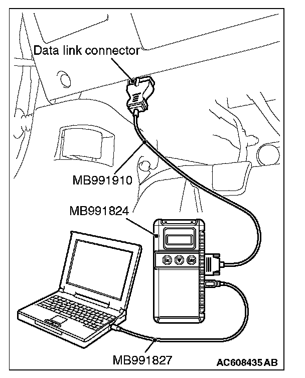CONFIRMATION METHODCAUTION: To prevent damage to scan tool MB991958, always turn the ignition switch to the "LOCK" (OFF) position before connecting or disconnecting scan tool MB991958.