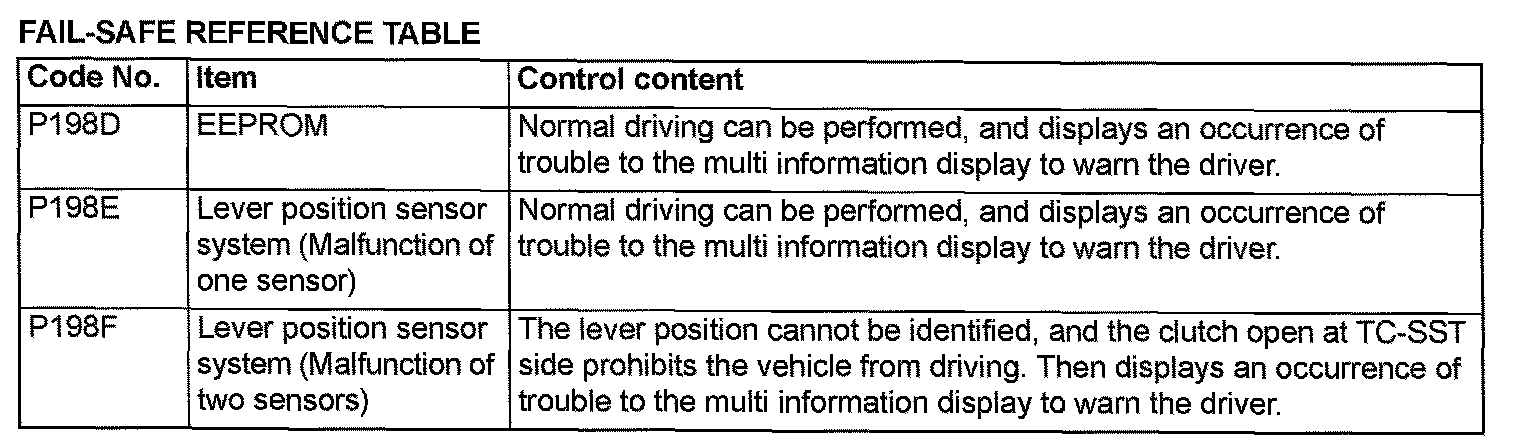 FAIL-SAFE REFERENCE TABLE