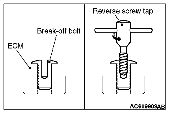 1. Drill in the break-off bolt a hole deep enough for the tap to stand.