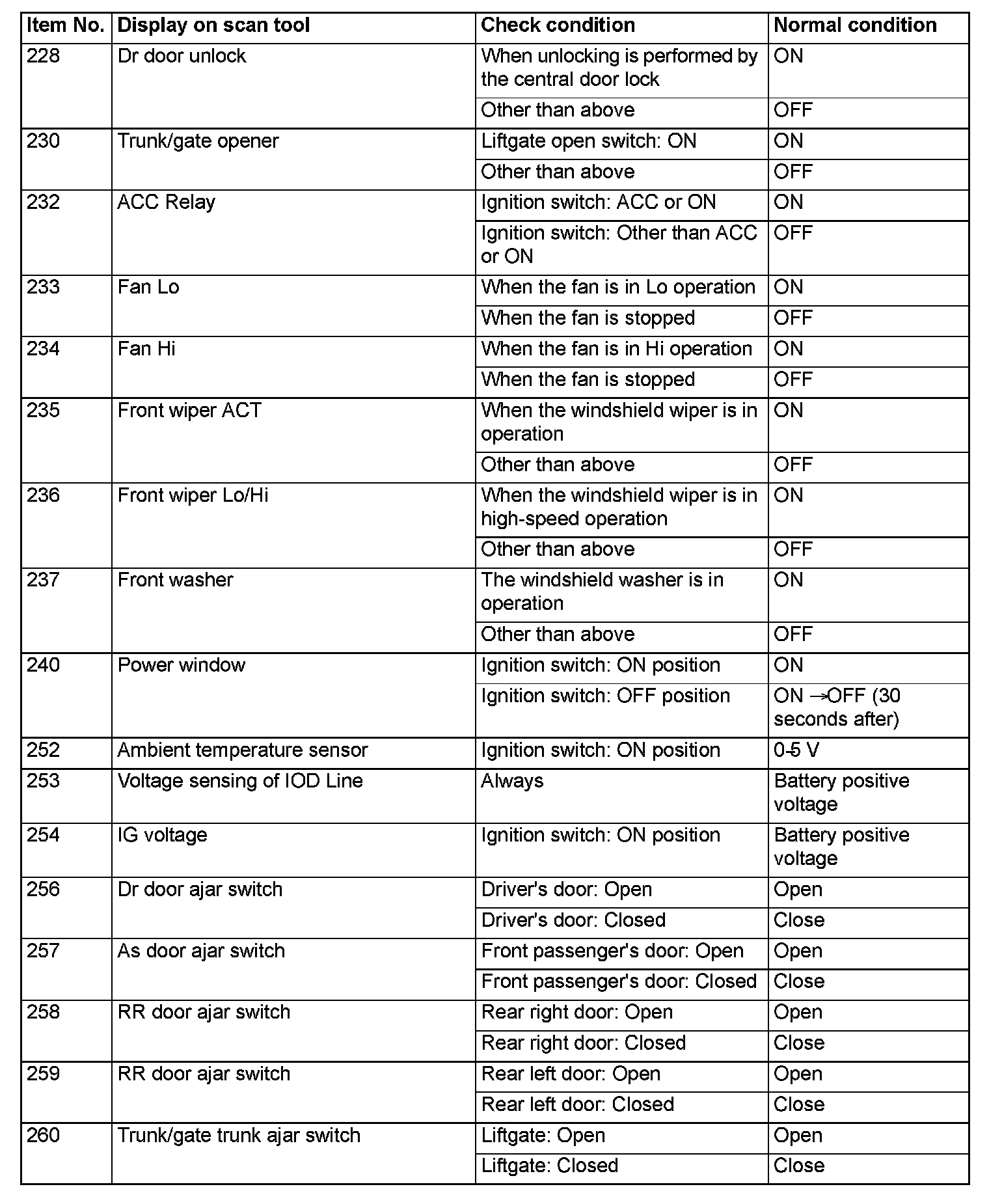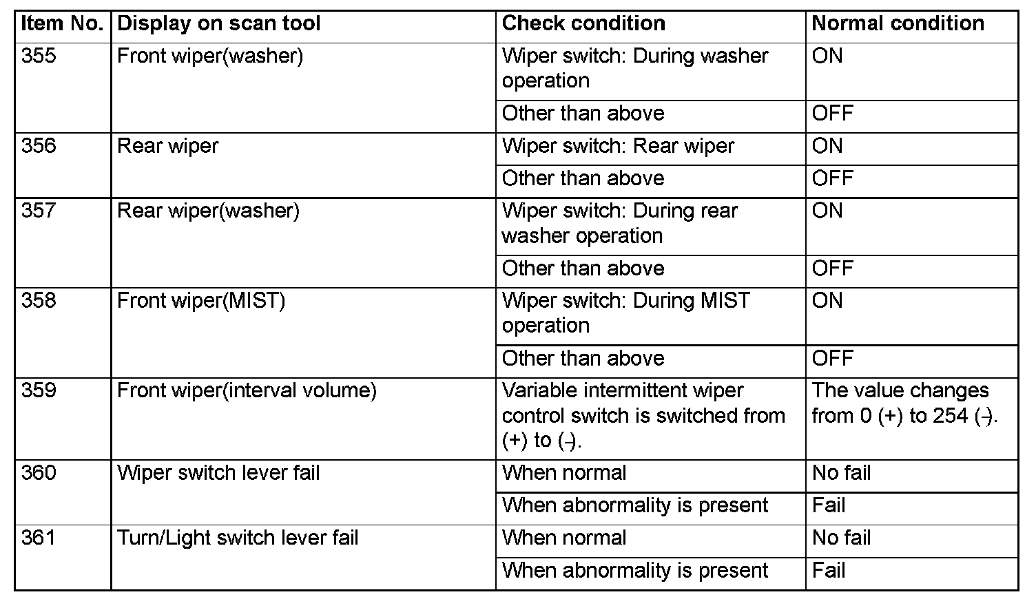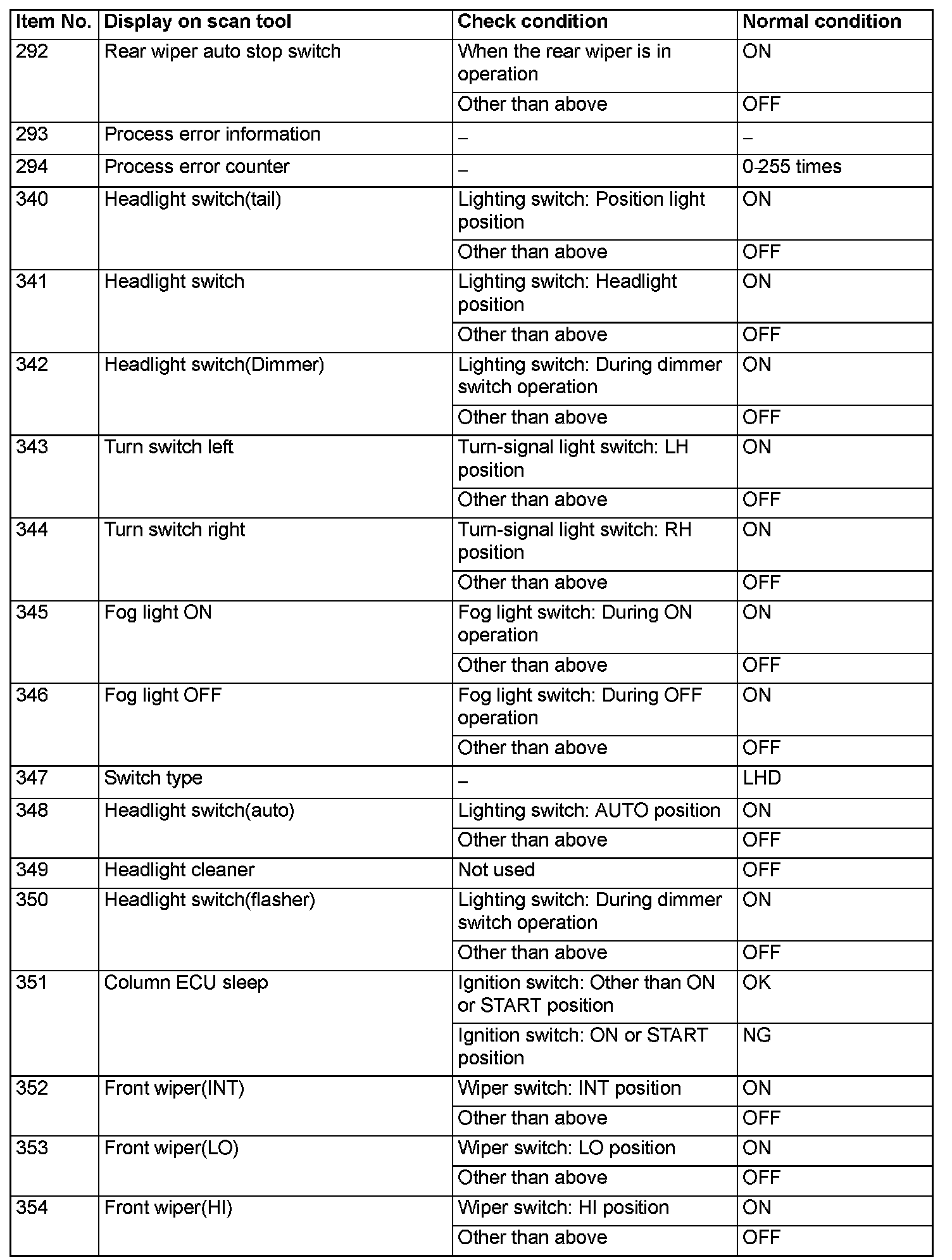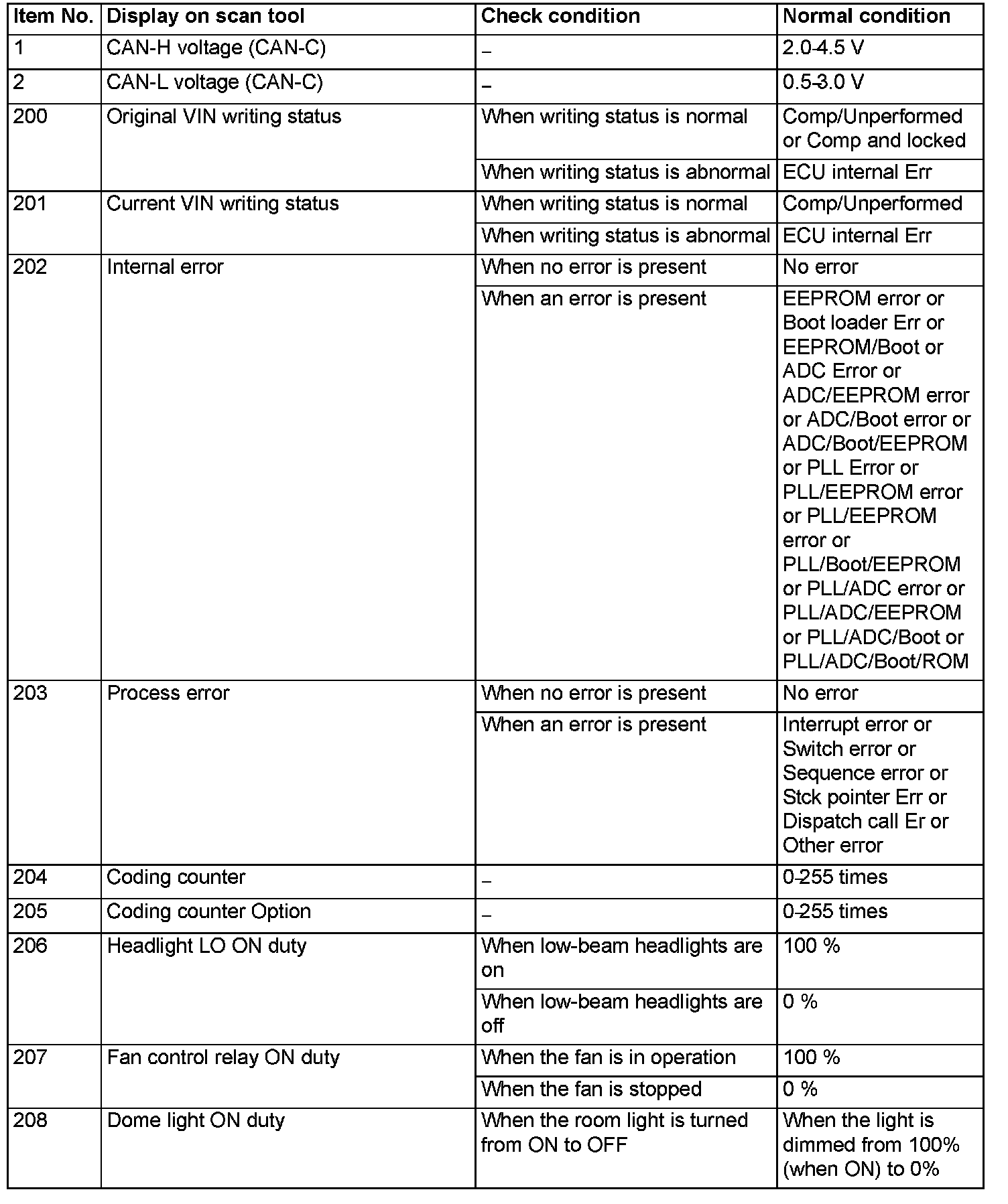 Some items are not displayed on scan tool MB991958 according to the information in the ECU.
