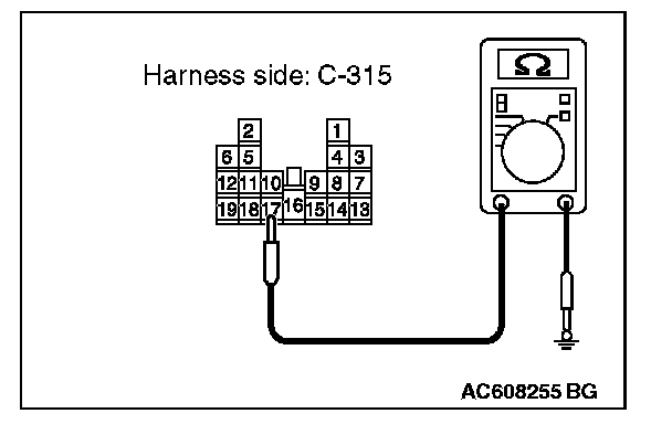 STEP 3. Check the wiring harness between ETACS-ECU connector C-315 (terminal 17) or C-317 (terminal 15) and the ground.