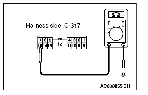 3. Measure the resistance value between ETACS-ECU connector C-317 terminal 15 and ground.
