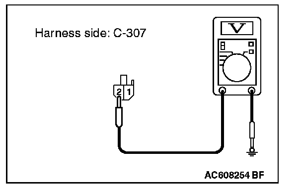 2. Measure the voltage between ETACS-ECU connector C-307 terminal 2 and ground.