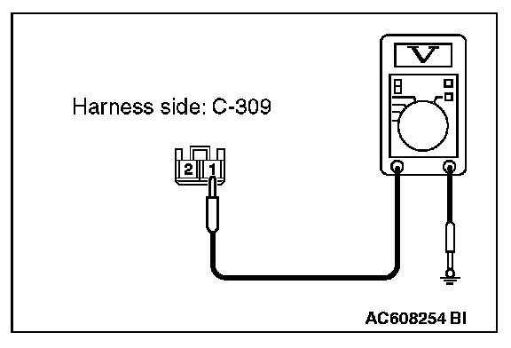 3. Measure the voltage between ETACS-ECU connector C-309 terminal 1 and ground.