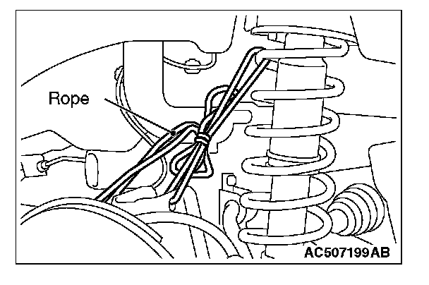 To avoid the break hose load, fix the trailing arm assembly with a rope as shown in the figure.