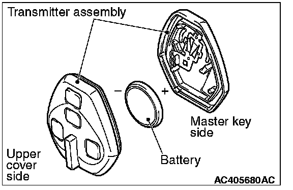 Install a new battery to the transmitter assembly with its (+) side facing towards the master key side.