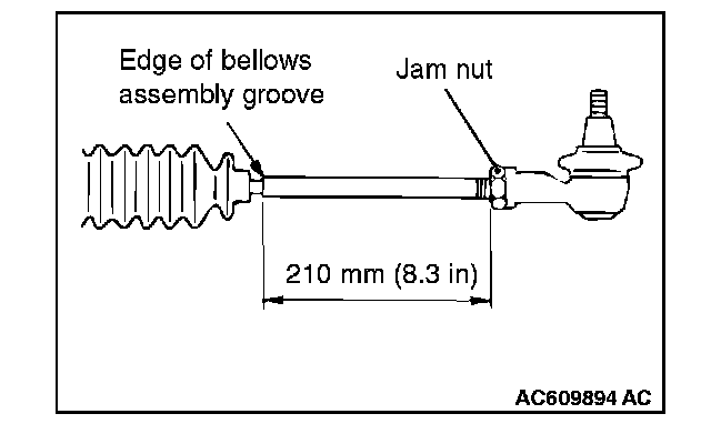 3. If not within the standard value, adjust the tie-rods (right and left), and repeat Steps 1 and 2.