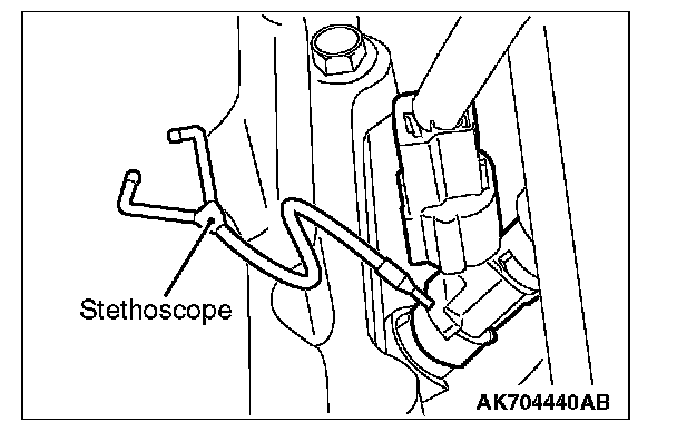 Using a stethoscope or long blade screwdriver, check the operation sound ("tick-tick-tick") of injectors during idling or during cranking. Check that as the engine speed increases, the frequency of the operating sound also increases.