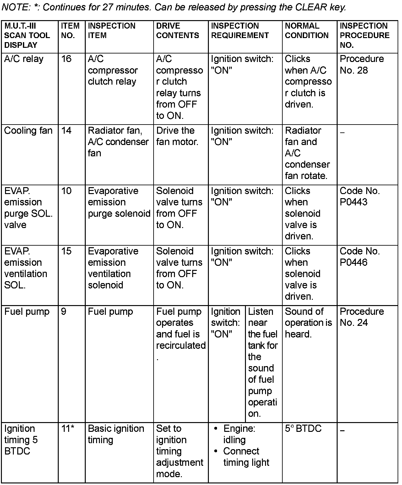 Actuator Test Reference Table (Part 1):
