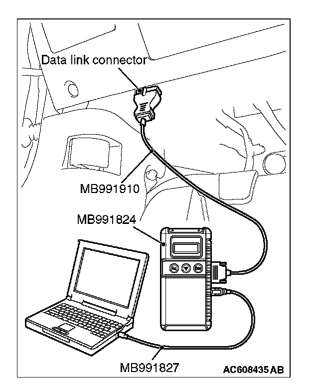 2. Connect scan tool MB991958 to the data link connector.