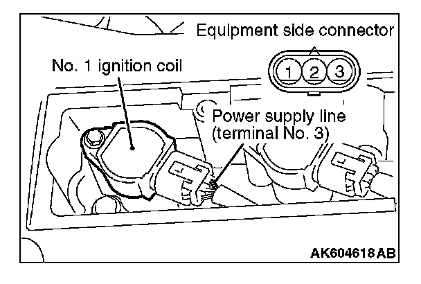 3. Set the timing light to the terminal No. 3 power supply line (white-red) of the ignition coil No. 1.