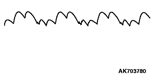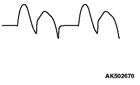 If the ripple height is abnormally high (approximately 2 V or more during idling), the wires between the generator "B" terminal and the battery have broken due to fuse blowing, etc. The generator is usually operating properly.