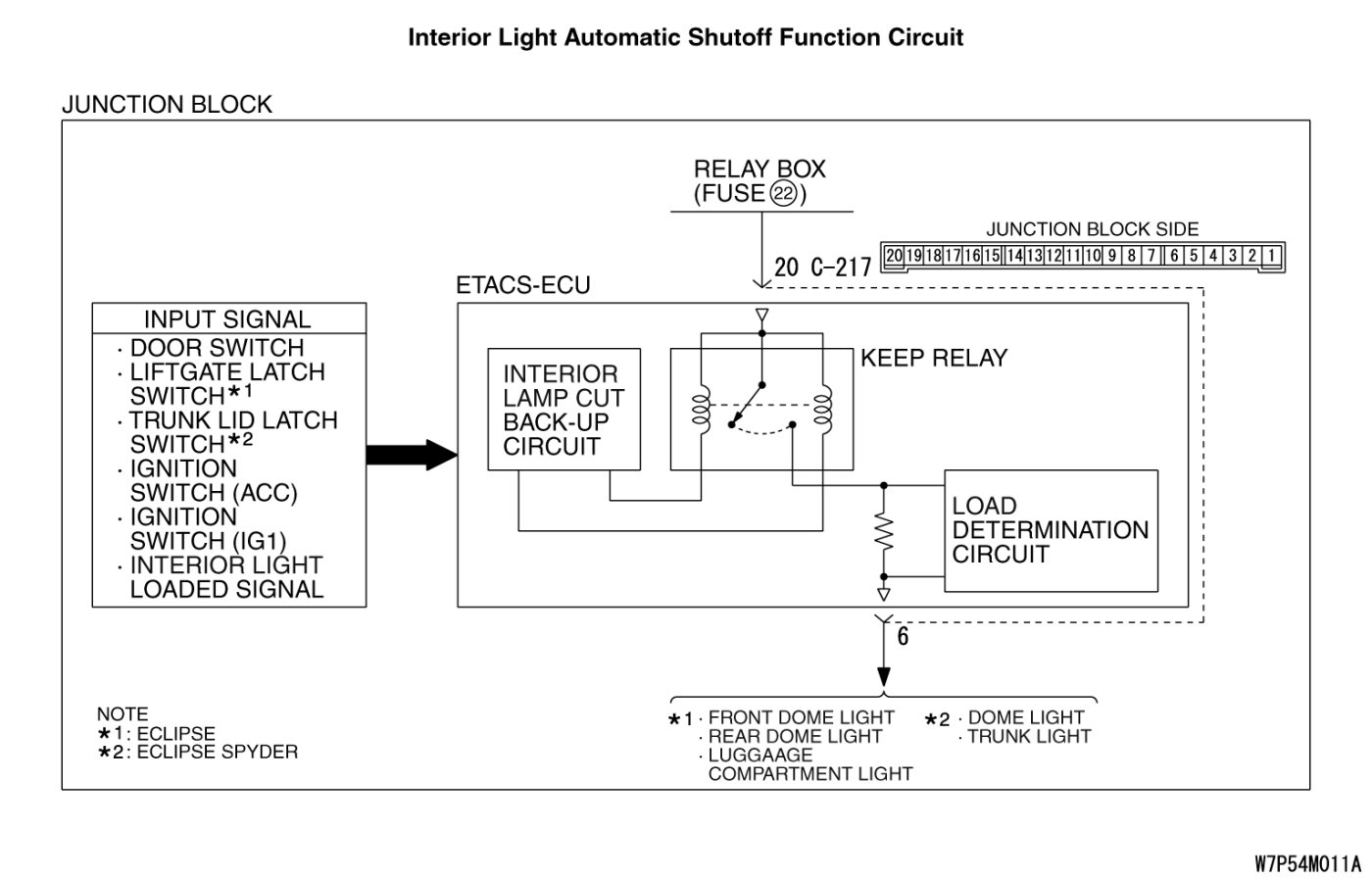 The ETACS-ECU operates the interior light automatic shutdown function according to the following switch signals: